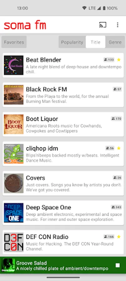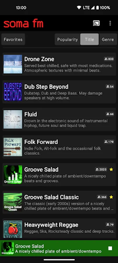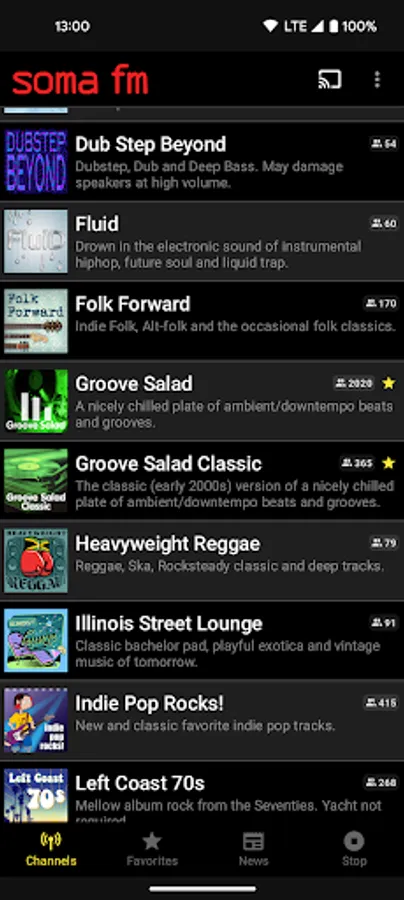 * Listen to all SomaFM stations