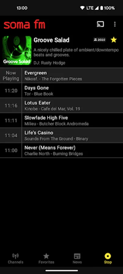 Simple and elegant streaming radio app for SomaFM.