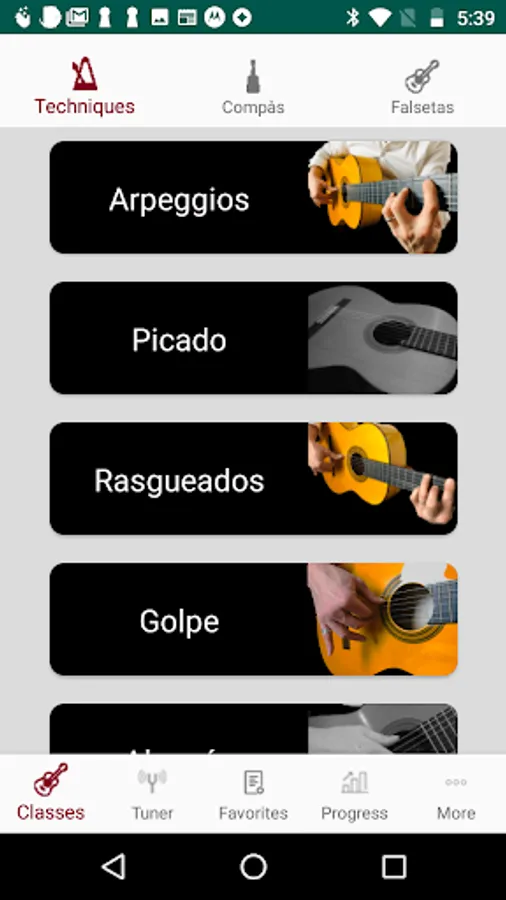 Every technique, style and falseta is presented with an instructional video followed by dozens of exercises designed for the user to craft, build and master the specific skill.