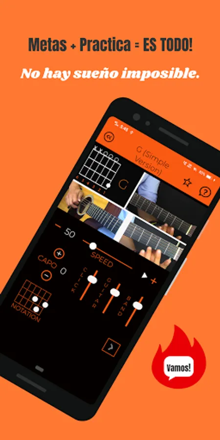What's more, Learn Guitar is fully bilingual. Language can be switched between English to Spanish at any time in any section. All texts and videos are displayed and spoken in the language of choice. Learn Guitar App comes with 200+ practice examples. New content is added with every update.