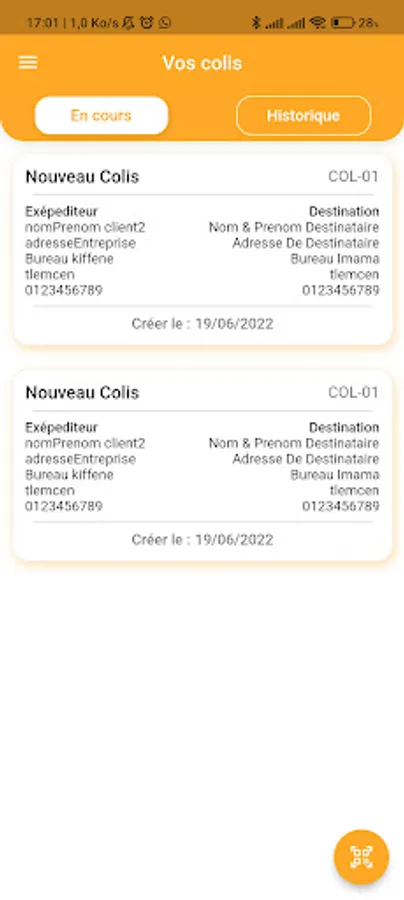 This application is intended for delivery people, it aims to facilitate their work by offering them the possibility of seeing the list of their parcels and of performing scans of the slips on the parcel or package.