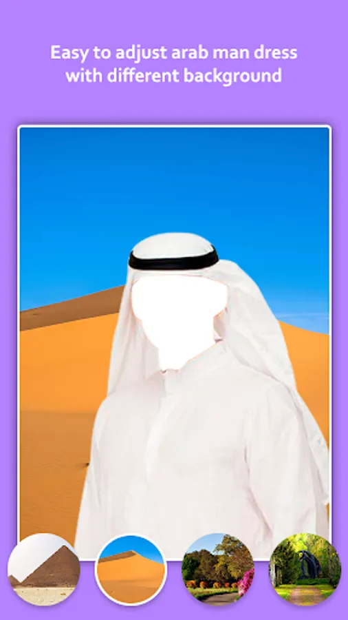 Arab Man Dress Photo Studio app employs professional tools like Arab Man Dress photo maker, photo editor, background remover, background changer and background editor to create presentable Arab Man Dress photo frames photo montages! Once installed, no further internet connection is required by Arab Man Dress Photo Studio app.