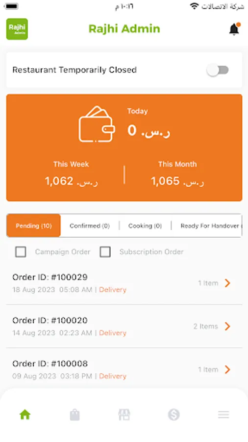 تطبيق الراجحي ادمن يسمح لمديري المطاعم الخاصه بسلسلة مطاعم الراجحي الغذائية بادارة الطلبات المستلمه و التعامل معها و تغير حالتها و تسليمها للسائقين