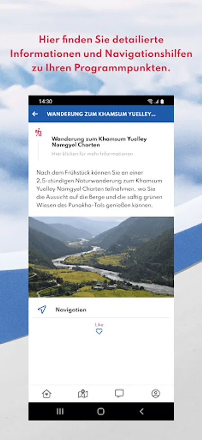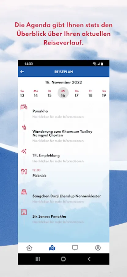 The always up-to-date itinerary informs you about places to visit, hotels and provides you with interesting background information.