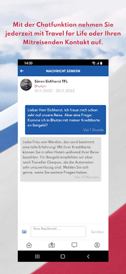 Thanks to the chat function, all fellow travelers and your personal contact at Travel for Life are always just a click away.