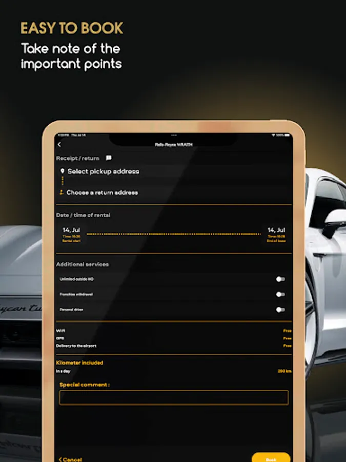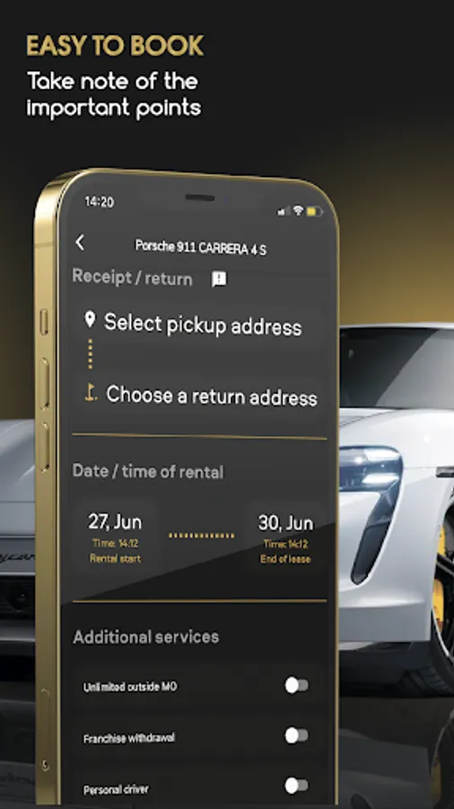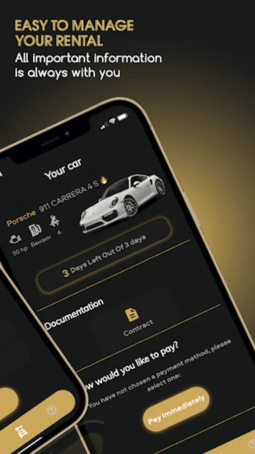 In the Alfa Rent Car app, it's even easier to arrange a short-term or long-term car rental. Just download the application, go through a small registration and use the car. For simplicity and convenience of renting a car you like, we have developed a number of additional options, a personal driver, cold drinks, electronic contracts, car delivery to any place convenient for you.