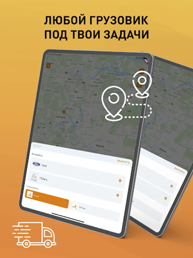 Скачайте приложение, пройдите регистрацию и уже сегодня пользуйтесь грузовиком.