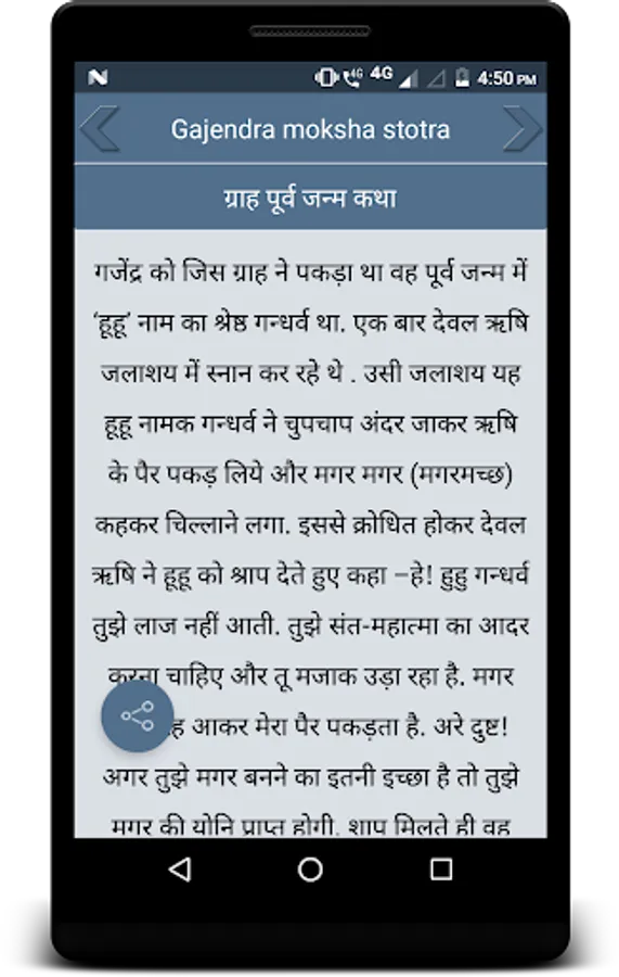 The Gajendra moksham Mantra grants the power to face difficulties and escape from them. This app contain good quality Gajendra moksha audio and Gajendra moksha in Hindi and English are free ones you download this app you don't need internet onnection.
