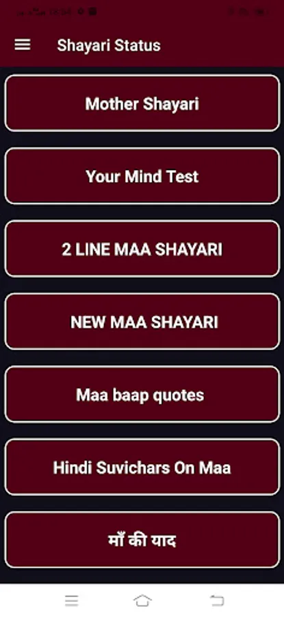 This app contains great collection of Maa Shayari , Mother father status & Mom Dad Status in Hindi.