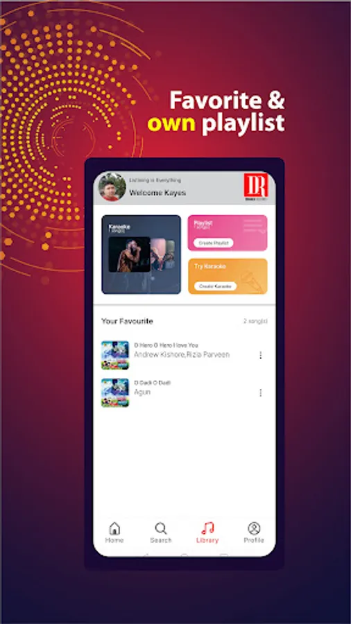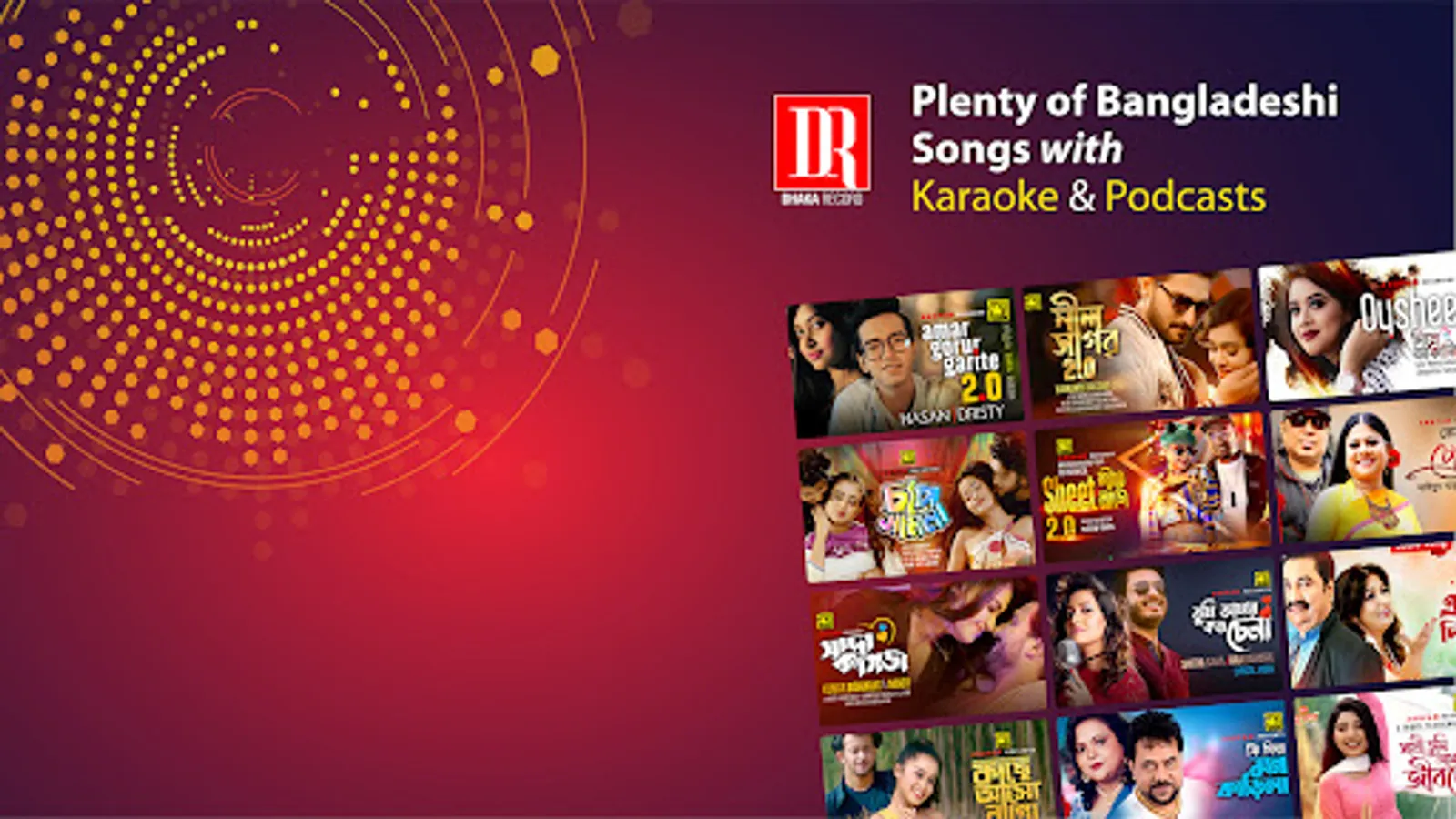Dhaka Record is a Bangladeshi one-stop music streaming and very first-time Karaoke feature in a music App to meet your music thirst. Dhaka Record offers you unlimited online access to all your favorite Bangla Songs – Dhallywood Music, Original Songs, Remake Songs, Own-voice recordings with Karaoke, Podcast & lyrics.