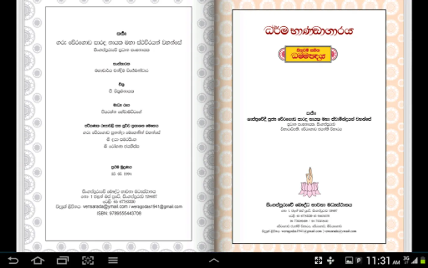World’s largest edition of Dhammapada, this is illustrated with 423 especially commissioned works of art. The book represents the quintessence of Buddhism, embodied in 423 stanzas that represent the words of the Buddha. The wisdom implicit in these sacred verses is timeless and is universally applicable. This encompasses both spiritual and worldly situations. The book classified into 23 chapters is arranged to give the reader the original Pali in Roman characters and the translation of each stanza at two levels. The prose order of each stanza is provided, with the meaning of each word explained. The story, out of which the verses emerged, is also provided. A comprehensive commentary facilitates the understanding of the work in depth. The book comes in an attractive slip-case, with an illustration depicting one of the most serene images of the Buddha adorning the cover. This is available in Sinhala and Chinese versions as well.