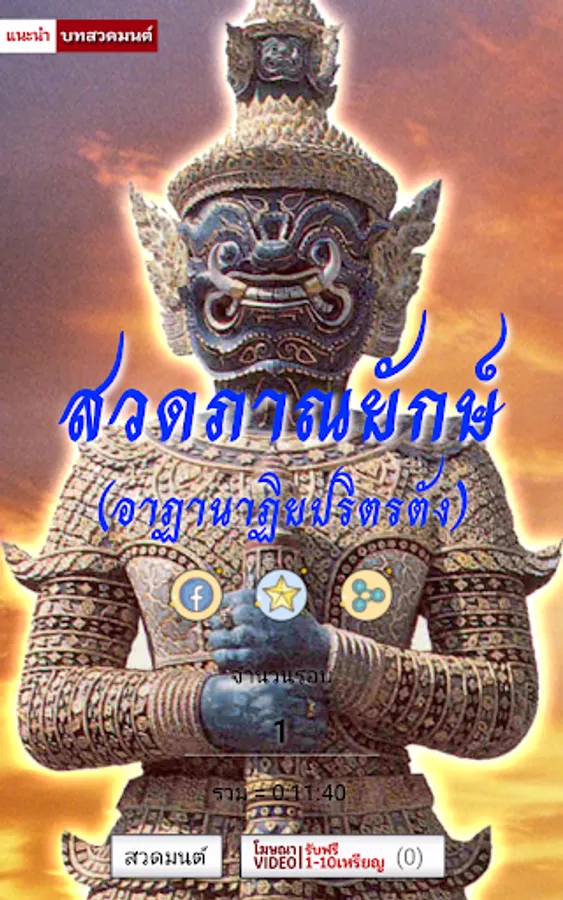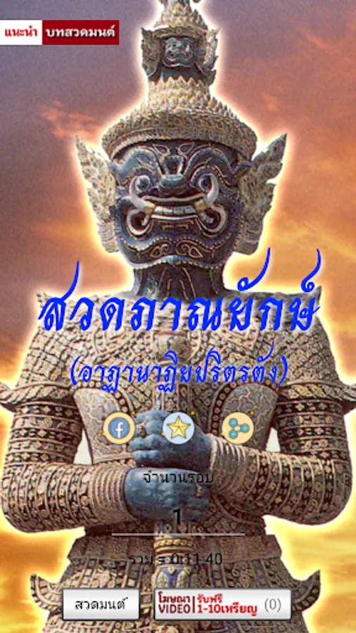 Giant prayer Is a ceremony that is believed to It is a ceremony that can eliminate and eliminate evil. And protect the prayers and the listeners to live happily The body of the prayer was from the Athenian Sutra. Which has the content that With treatment in Athana City Describing the situation before the Lord Buddha Of the Four Emperors of Heaven And the guardian of the giant, the elder, the ghosts and the naga