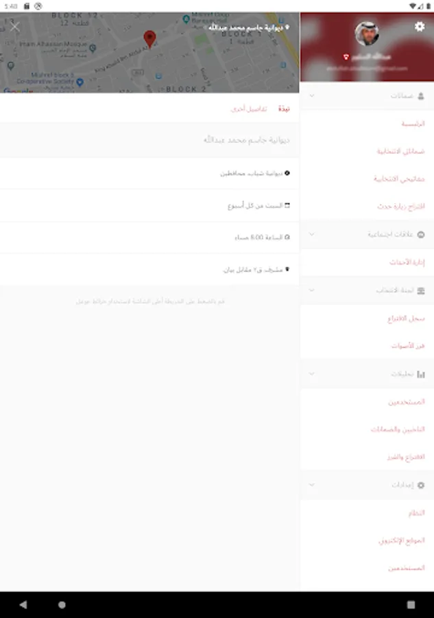 — Events: Schedule campaign members' suggestions to visit events such as social events and Diwaniyahs.