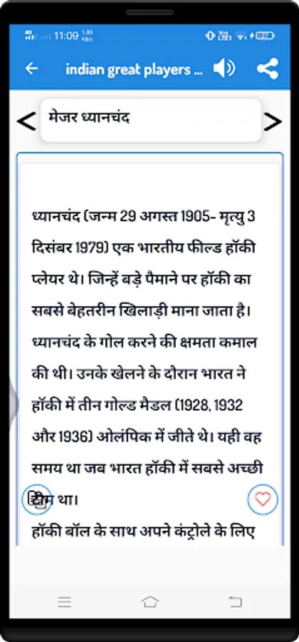 Some features of Indian Great Players android app.
