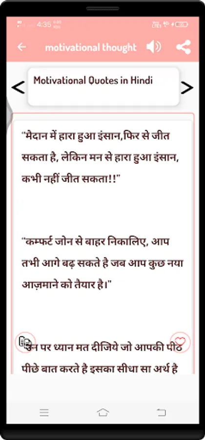 This app brings you the best collection of motivational quotes in Hindi. Messages of this app will help overcome with all those difficult situations and will make you think more positively towards life.