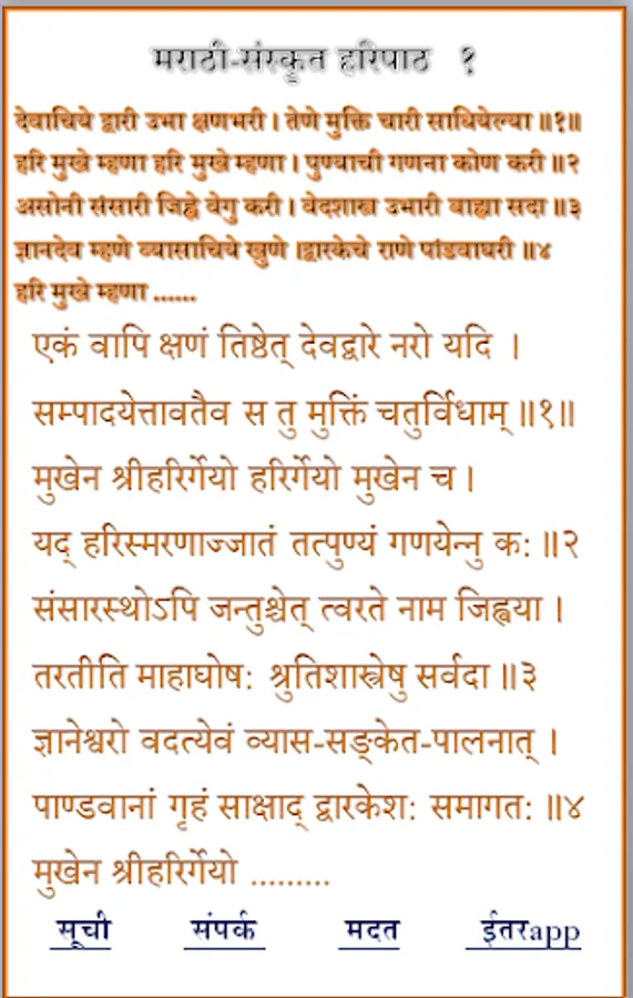 WARKARI HARIPATH SHRI SANT DNWANESHWAR MAHARAJ HARIPATH IN SANSKRIT WITH DEVNAGARI TEXT AND ALSO MARATHI ABHNG