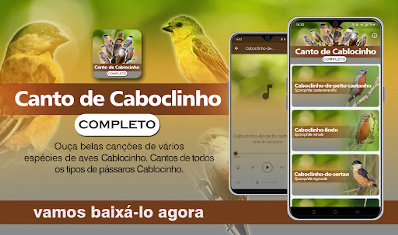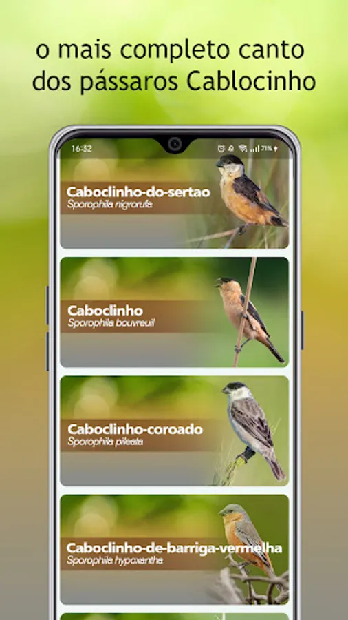 This app contains a collection of the best Caboclinho birds singing sounds
