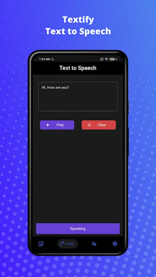 - Textify(Text To Speech) helps the user to create custom sentences & pronounce them