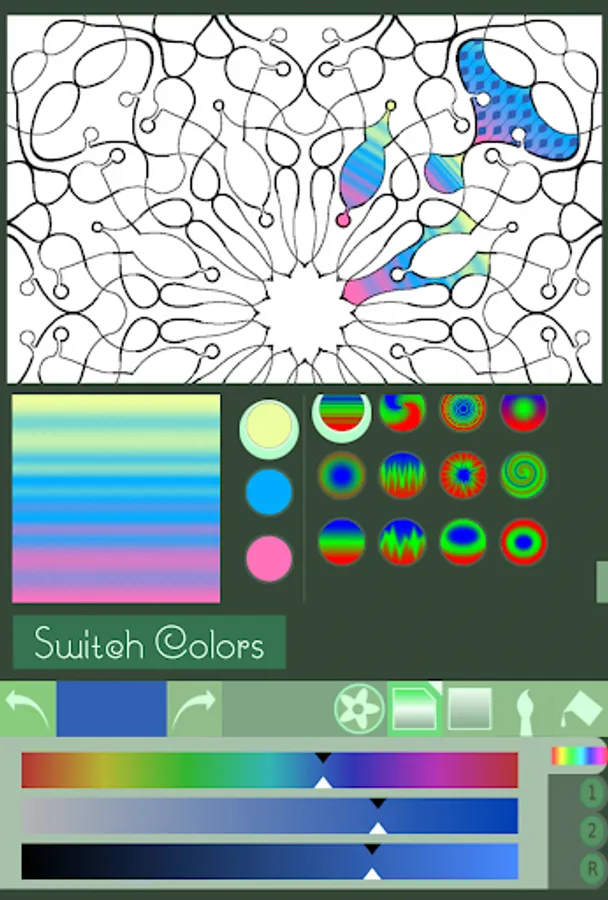 Rainbow full of colors and mystery mandalas for professional users for de-stressing.