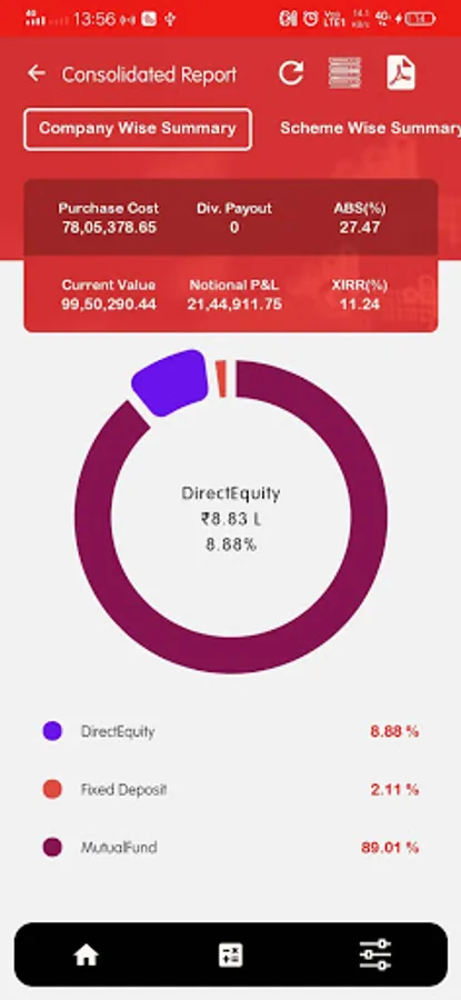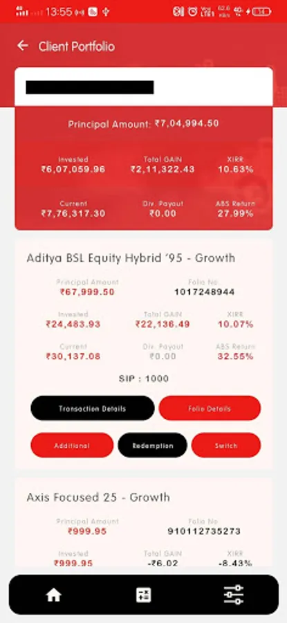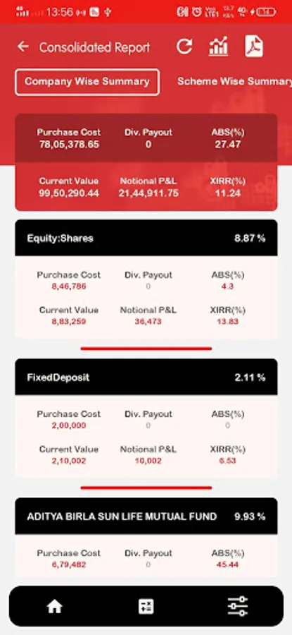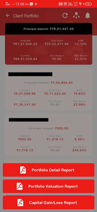 DhanVriddhi EasyMF app allows clients to view their investments in Mutual Funds, Fixed Deposit and Insurance at the click of a button. It also provides a consolidated investment report.