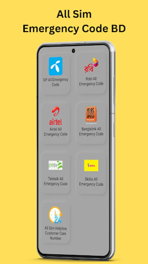 All Sim Emergency Code BD is a simple and convenient Android app that provides a comprehensive list of emergency codes for all the major telecommunications operators in Bangladesh. The app features a user-friendly interface and easy navigation, allowing users to quickly find and access the emergency codes they need. With this app, users can easily find all sim operator emergency code numbers for various services.