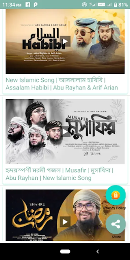 বাংলা নতুন এবং জনপ্রিয় সব গজল পাবেন (গজল টিউব) অ্যাপ এ ইসলামিক সব দারুন গজল এর কালেকশন নিয়ে তৈরী করা হয়েছে আমাদের (গজল টিউব) অ্যাপ। সব জোনপ্রিয় এবং নতুন গজল পেতে এখনই ডাউনলোড করুন গজল টিউব অ্যাপ এবং নতুন নতুন সব গজল পেতে নিয়োমিত অ্যাপটি আপডেট করুন।