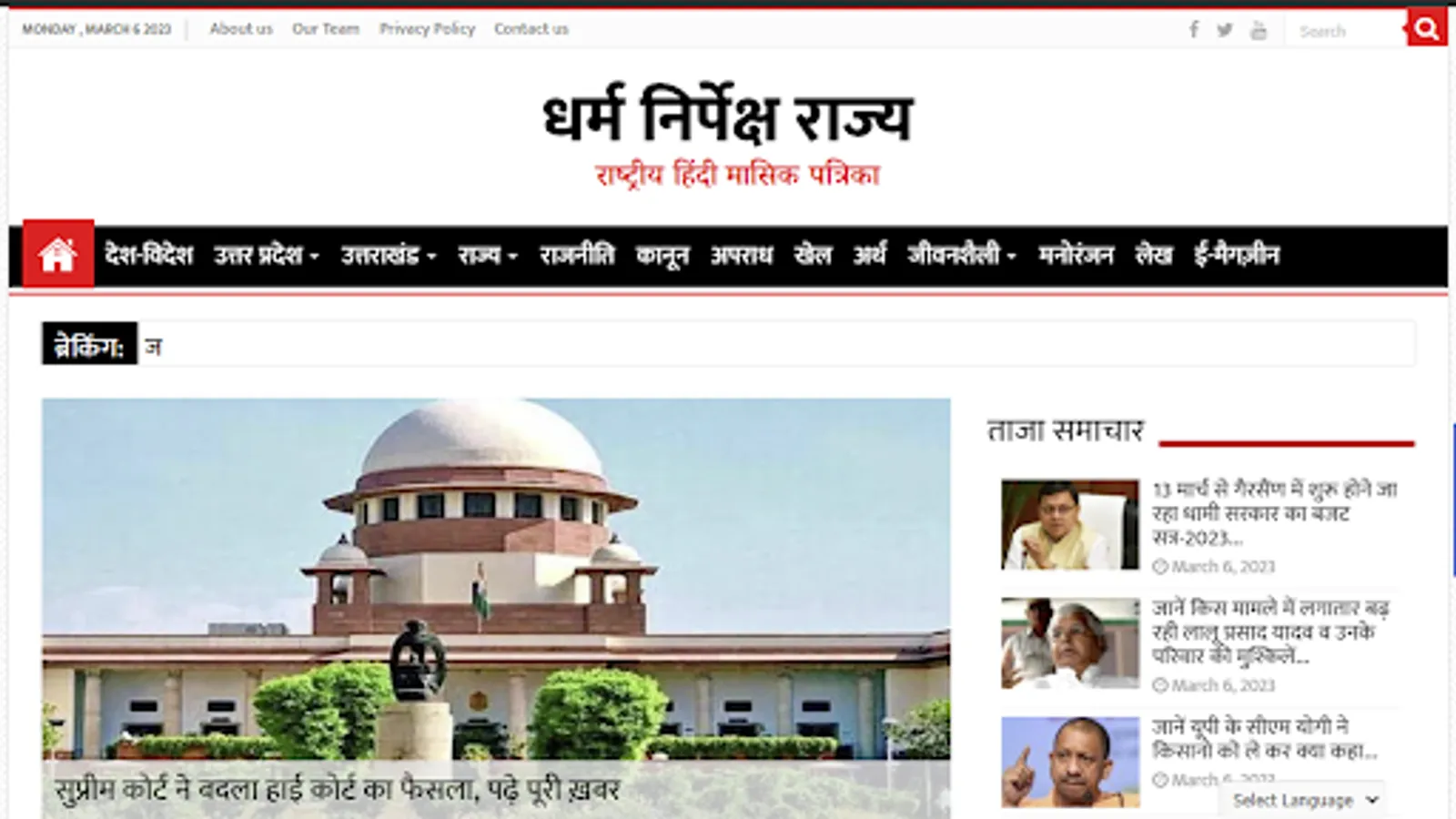 Dharm Nirpeksh Rajya is registered National Hindi Magazine. Licensed from RNI, we provided only trusted information to our audiences. Visit https://dharamnirpekshrajya.com/ to view more.