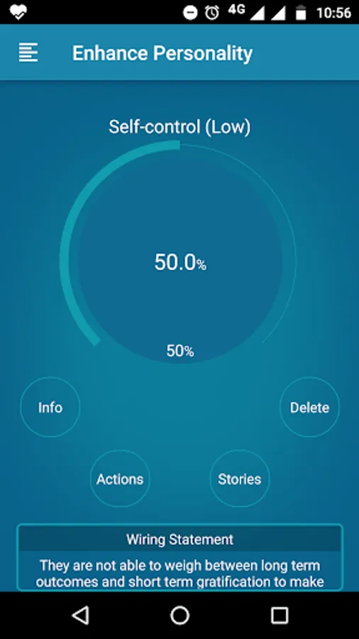 The Enhance Personality App is used as the second step in the personality development program. It is used to develop your personality that is affecting your emotional health by strengthening the neural connections associated with your personality trait. Examples of personality traits include sensitivity, perfectionism, obsessiveness and nervousness. You can think of these traits as the summation of your behaviors.
