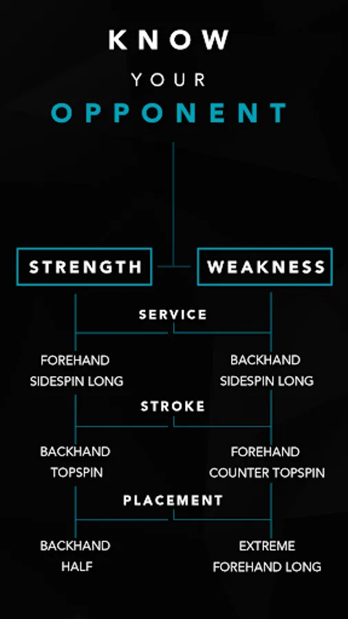 Find your strong and your opponent’s weak placement zones and to give your strokes a point-winning placement.