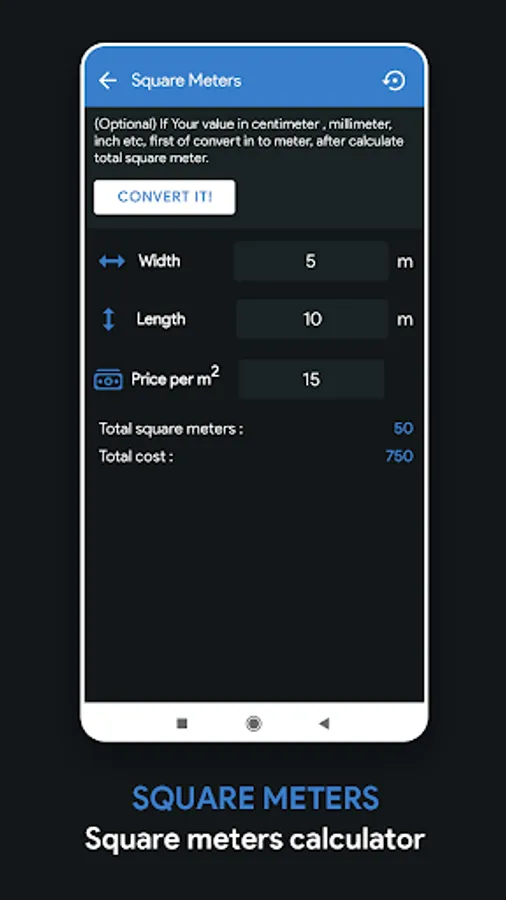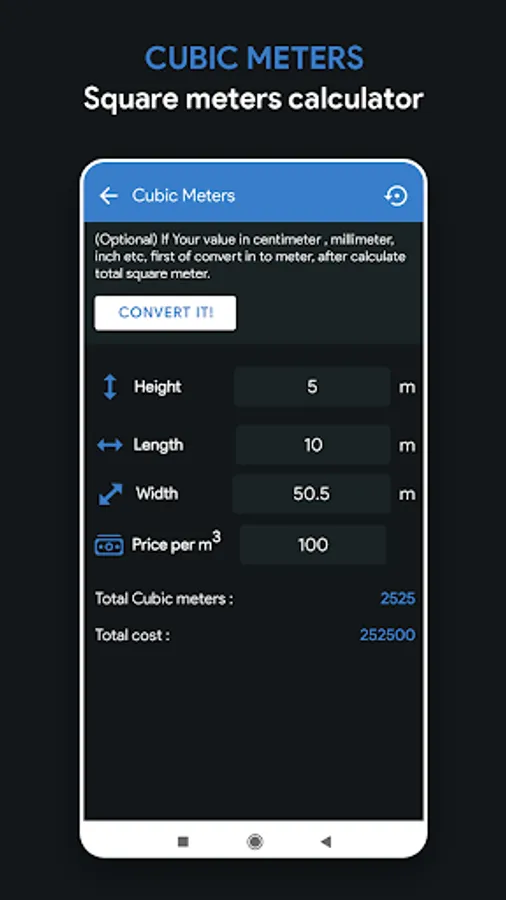 square meter app: Square meter app to Calculate Square meter, Cubic Meter, total square meter, total cubic meter. Calculate square feet and inches as well as cubic feet and inches.