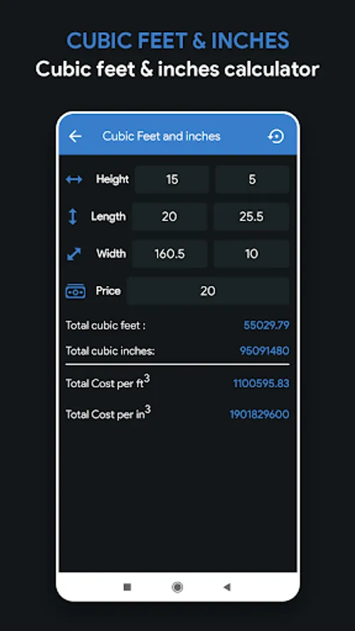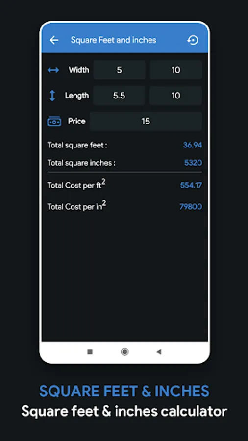 Square feet measurement app You just have to set the width, height in feet and inches, Calculate total square feet and cubic feet.