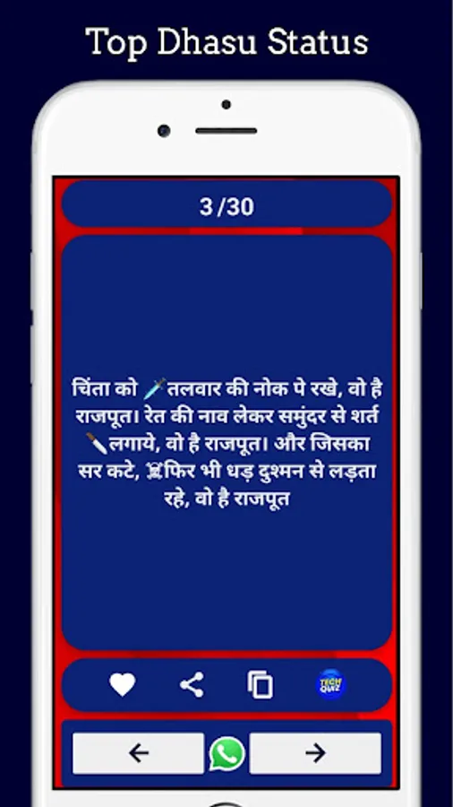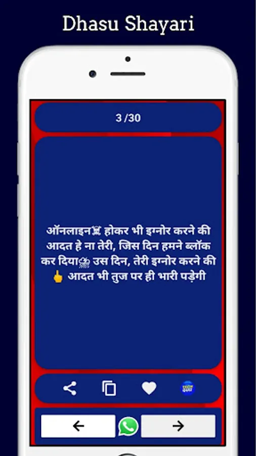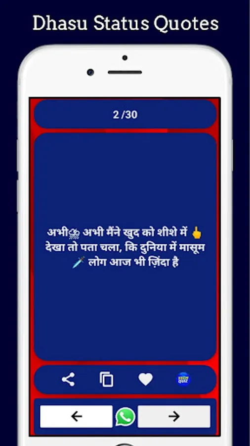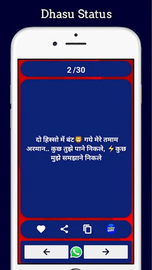 Very easy to use interface just next and right to read the beautiful Dhasu faru status in Hindi and easy share to your friends.
