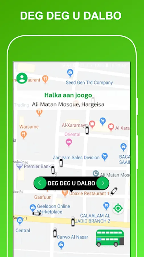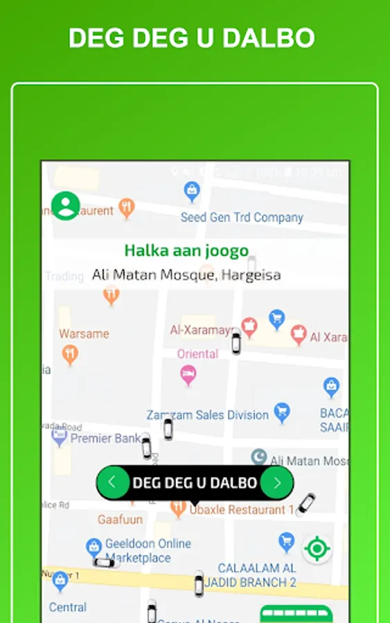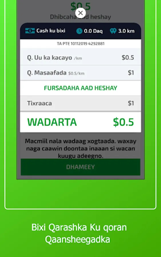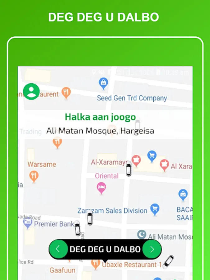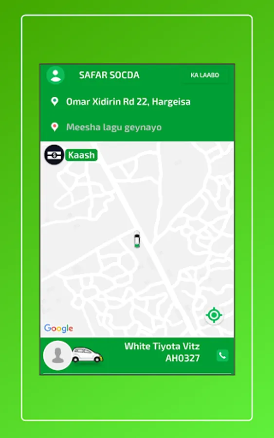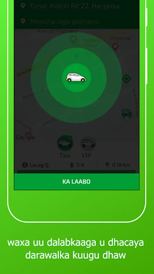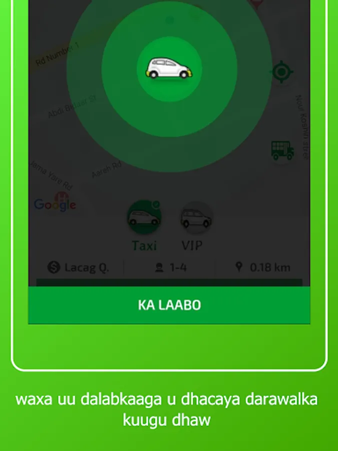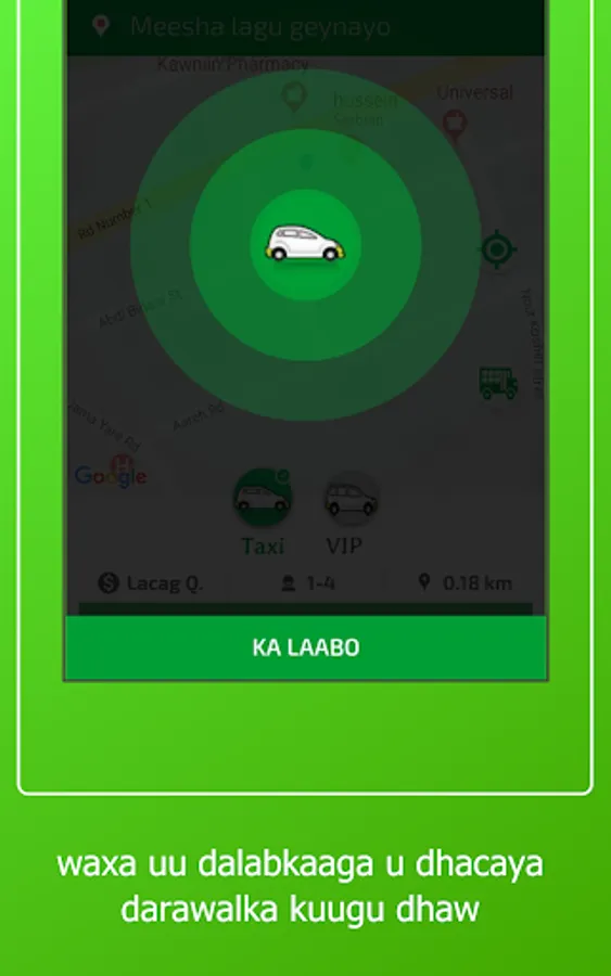 1-Macaamiilka ayaa dooran kara meesha uu rabo in la geeyo , kadib ayuu arki doona masaafada lagu tagi karo meeshas iyo lacagta lagu geynayo , kadib ayuu dooran karaa nuuca gaari u rabo inuu raaco hadii ay online yihiin kadib waxuu ku xirmi doona darawalka ugu dhaw ee dhaweeye.