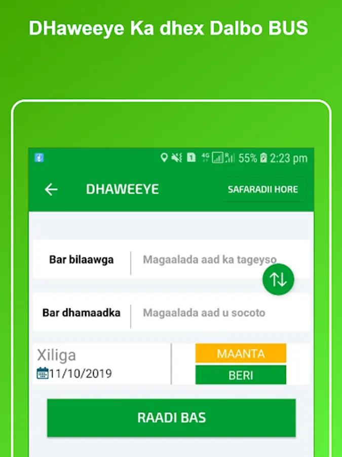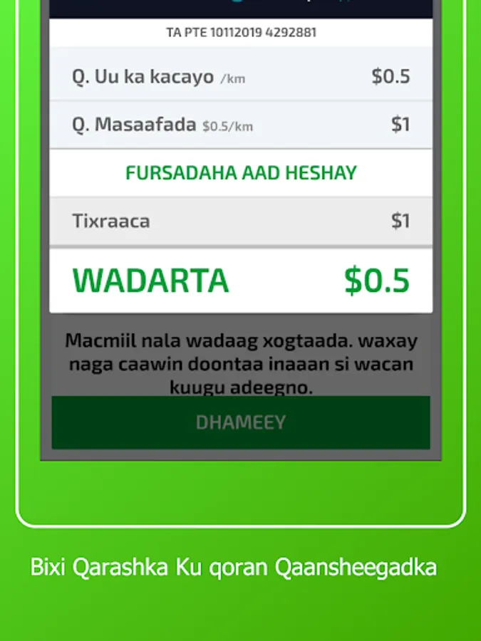 9-Marki la gaaro meeshi u dalbaday macaamiilka waxay heli doonan labadaba warqad ay ku qoranthay warbixin ku saabsan lacagti safarka.