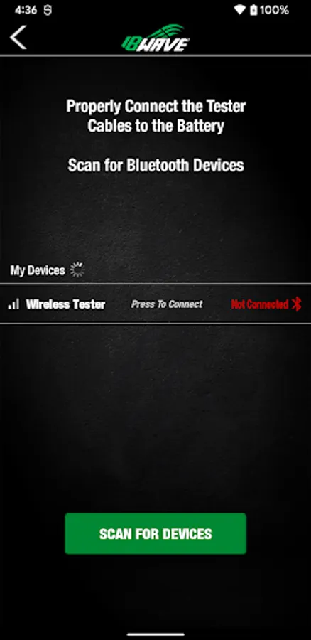 IB Wave Connect App easily syncs your Bluetooth Battery Testers to your smartphone or tablet. The wireless 6V/12V Battery Tester performs Battery Test, 12V Start-Stop Battery Test. It will also perform 12V/24V System Test. Simply download and install the IB Wave Connect App from GOOGLE PLAY Store to your mobile devices and experience the most advanced testing technology.