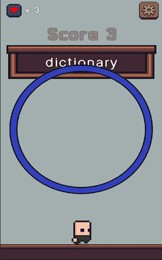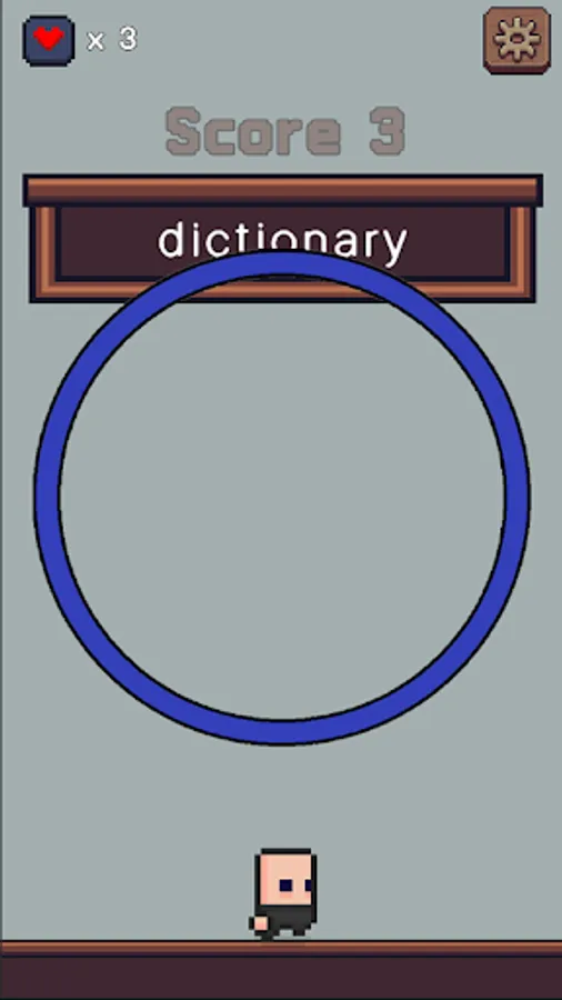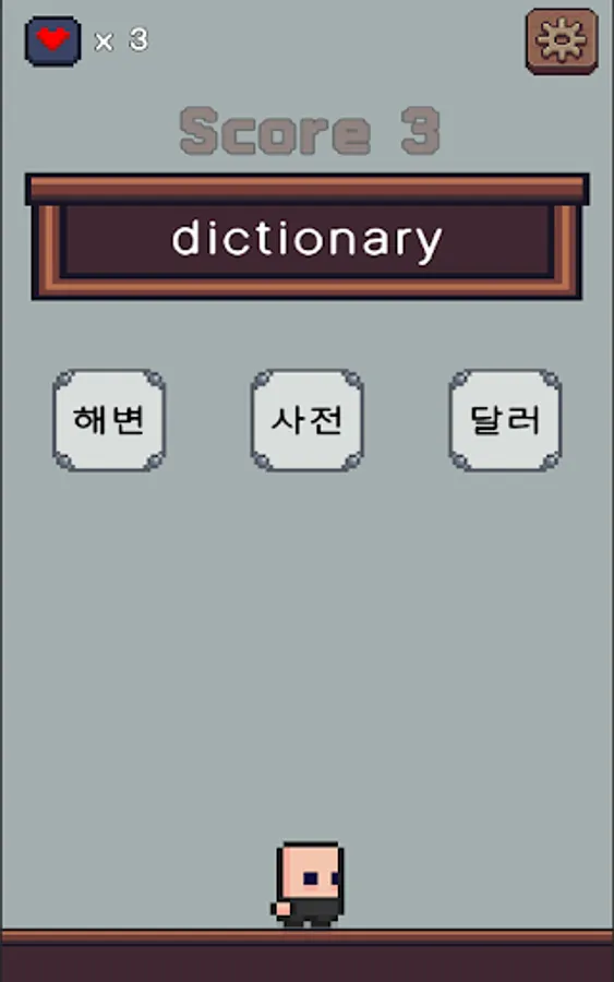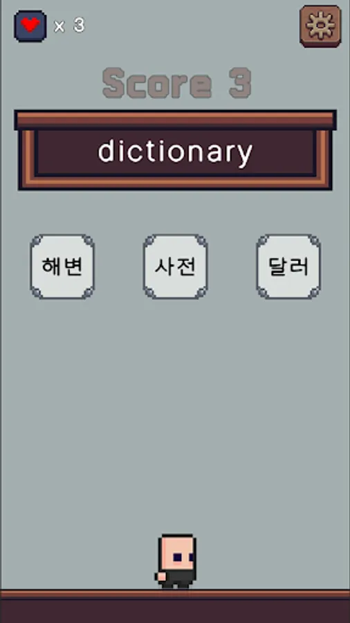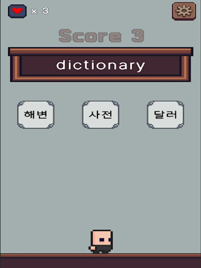 게임이 시작되면 문제가 나타나고 조금 뒤 3개의 단어의 뜻이 위에서 내려옵니다.