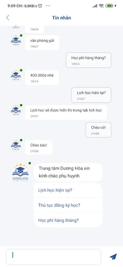 - Information is transmitted in accented Vietnamese, the content is not divided into messages such as SMS. Parents easily store, look up, and find their children's learning information easily.