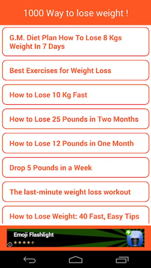 This Android Application help you to find the solution of "HOW TO LOSE THE WEIGHT" with very simple way. This application contain number of tips and exercise guide by the help of which you can easily lose your weight. For example If you want to lose weight faster, you'll need to eat less and exercise more. For instance, if you take in 1,050 to 1,200 calories a day, and exercise for one hour per day, you could lose 3-5 pounds in the first week, or more if you weigh more than 250 pounds. All of such types of guide and tricks and tips you will find in the application. If you really want to lose your weight please use this application.