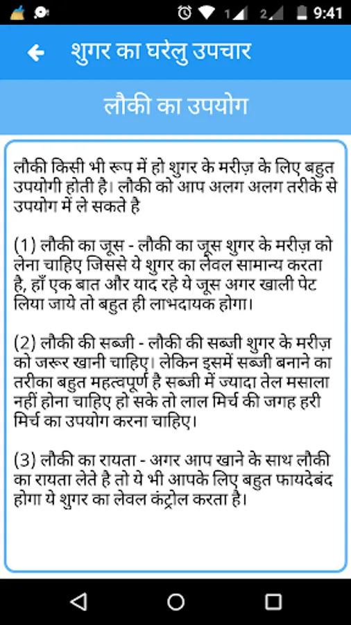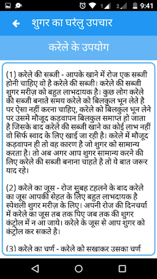 This application is very useful for Diabetes Patient described in hindi, "sugar ke gharelu upchar in hindi" contain the very important and unique tips and tricks to control the sugar level in human body. This application contain the following -