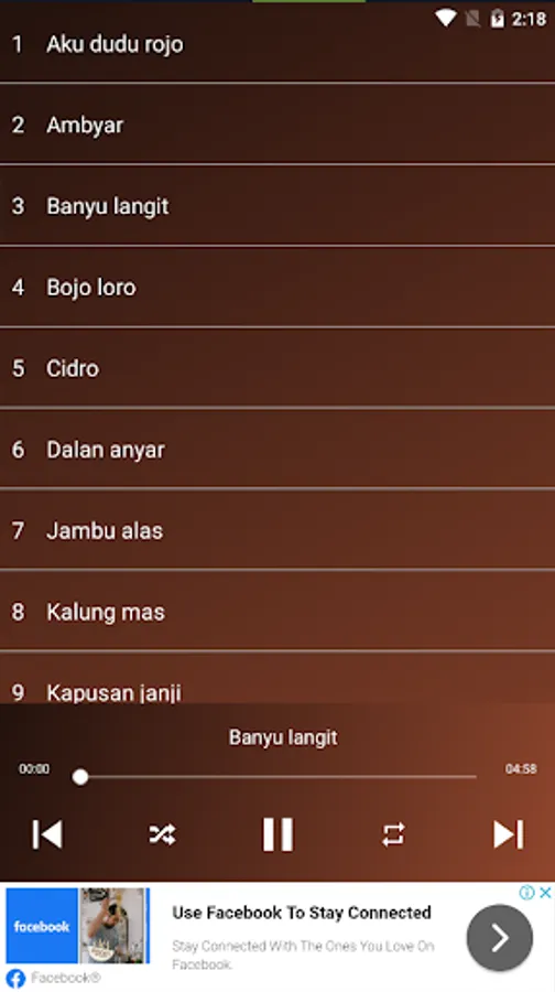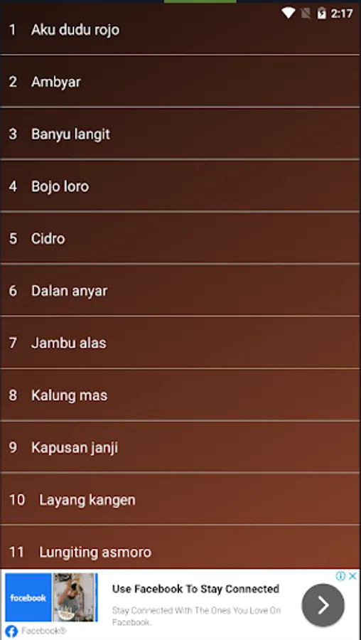 In this application we collect some popular songs from Didi Kempot Songs, for those of you fans of Didi Kempotjangan Songs forget to download this application to play offline.