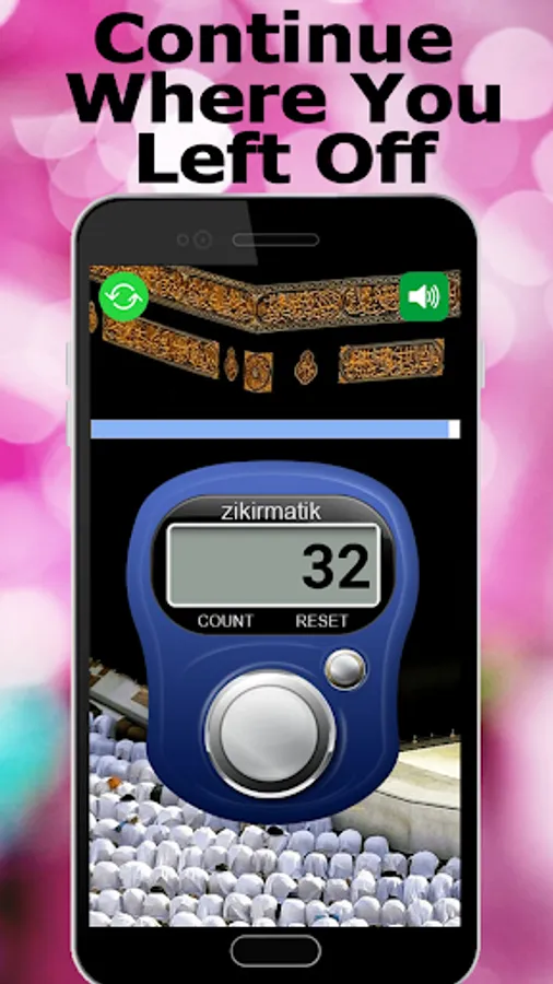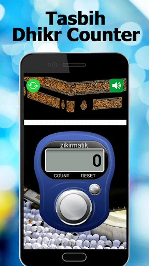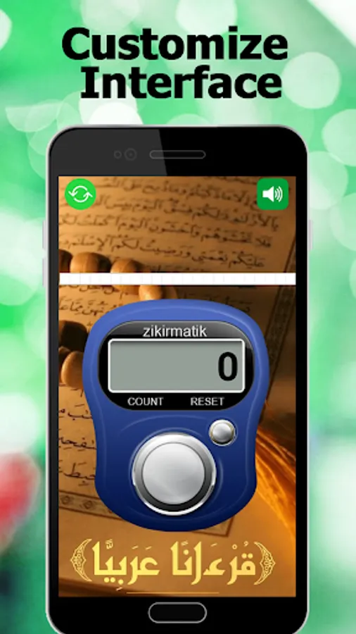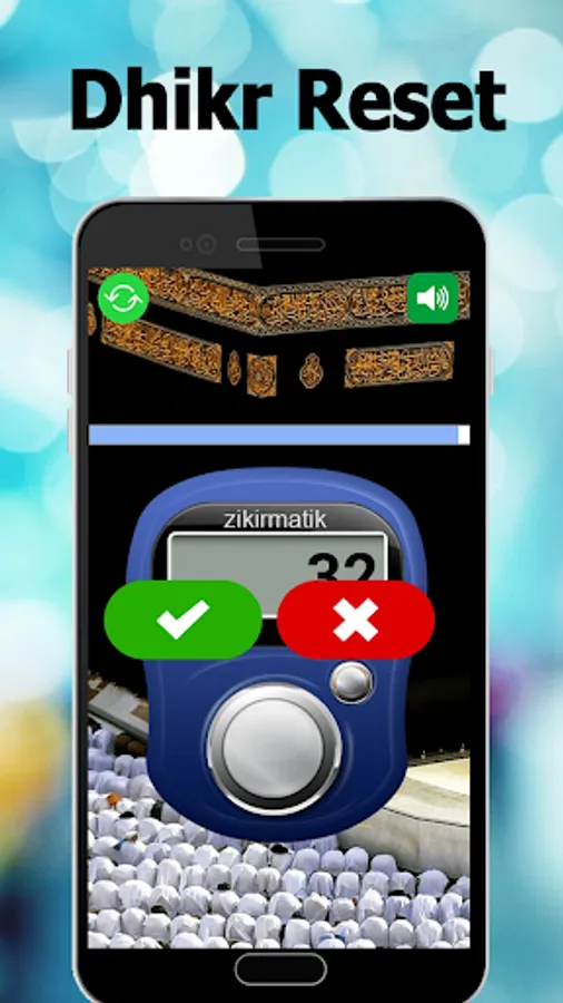 At the discretion of your wish to reset, your reminder will be reset by pressing the reset button. It gives you voice notification on the dhikr key. You can mute it by pressing the sound icon at the top and activate your voice again.