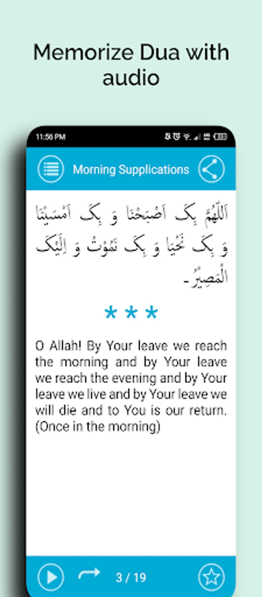 The Dua and Azkar - subha sham application will help you find all the necessary prayers throughout your life. The Azkar application contains extremely reliable prayers from the Quran and the most pure Sunnah, for the most part, all the necessary links are indicated after the given hadith or a fragment from the prayer.What will you find in this Dua and Azkar - subha sham Offline application?