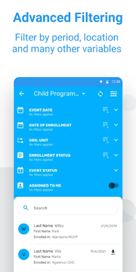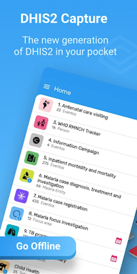New generation of DHIS2 Android Apps for data sets, events and tracker data capture. Configurable feel and look ,easier login and enhanced data protection, attractive and user friendly navigation.. Search/registration integrated for tracker, improved tracker dashboard, pictorial data entry for events, event completeness information, and many more...