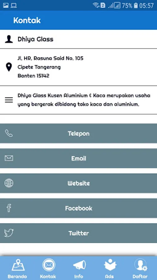DHIYA GLASS – is a business engaged in the Sales Order Shop for Aluminum Glass Window Door Frames which is located on Jl. HR. Rasuna Said No. 105 Gg. Duck Rt. 002/04, Cipete Tangerang, Banten , 15142