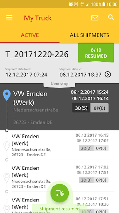 Shipment queue per driver - each driver has own assigned shipments.