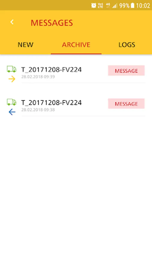 Message center between driver and dispatcher including image sending feature.