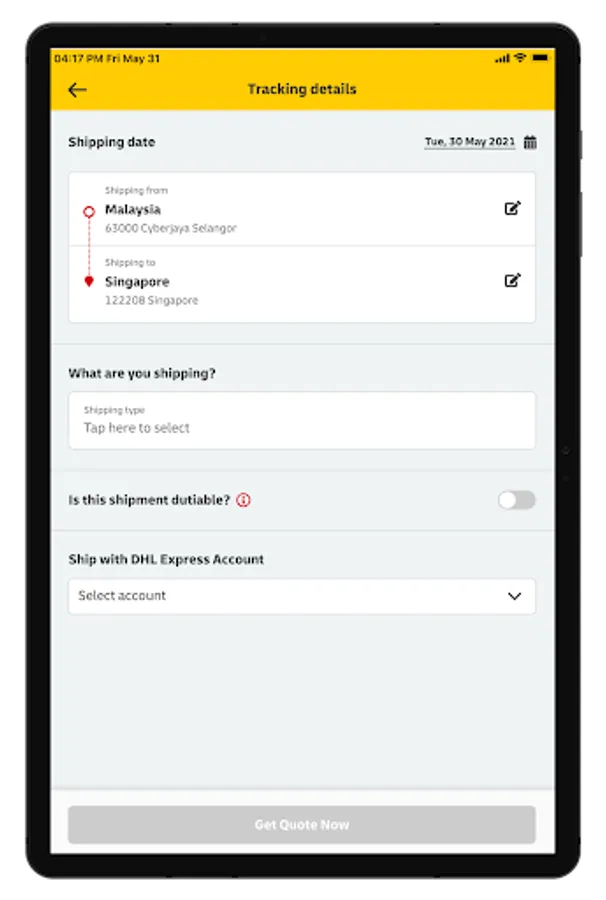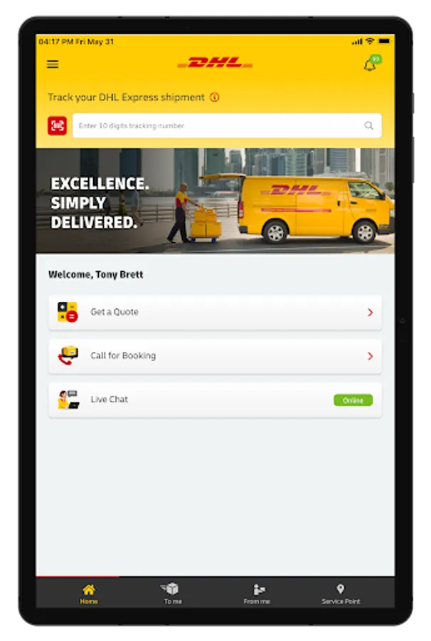 The new DHL Express Mobile app lets you track your shipments and manage your deliveries all in one place. You can locate the nearest DHL Service Point for parcel drop off or collection, and quickly check shipping rates too – right on your smartphone. Advanced GPS location services and camera barcode scanning are also available. Download DHL Express Mobile today.
