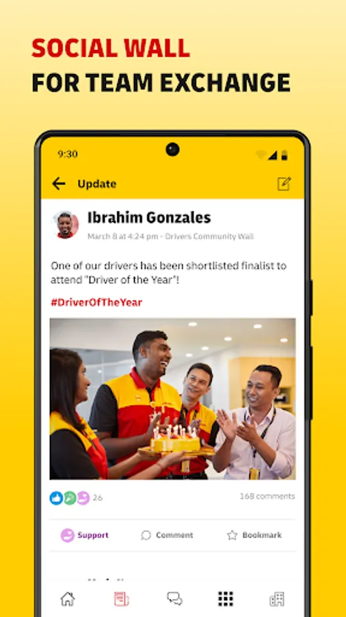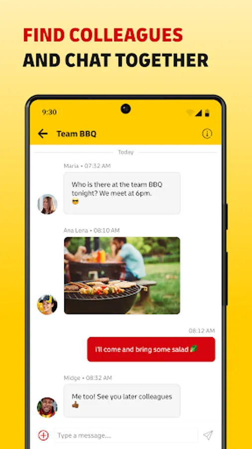All employees can use the chat and social walls to connect with each other. The app invites everyone to explore new topics, engage with the content and share posts, pictures and videos throughout the organization.
