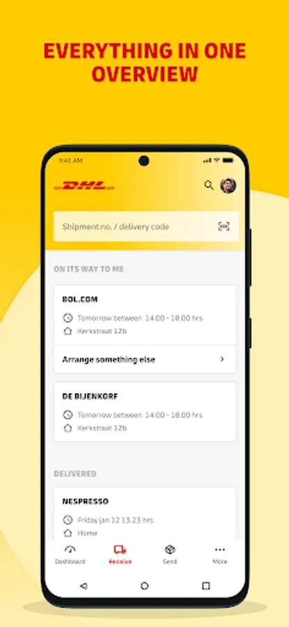 Keep track of your parcels in My DHL. The app shows you what you have sent and which shipments are on their way to you.