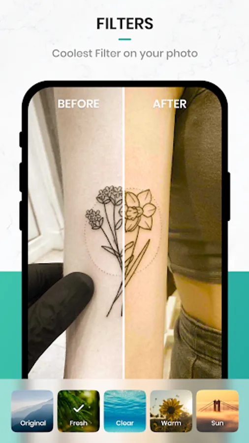It’s very simple. First draw a mark on the area you would like the tattoo to be, choose a tattoo from gallery, and see how the tattoo would look like in real life!